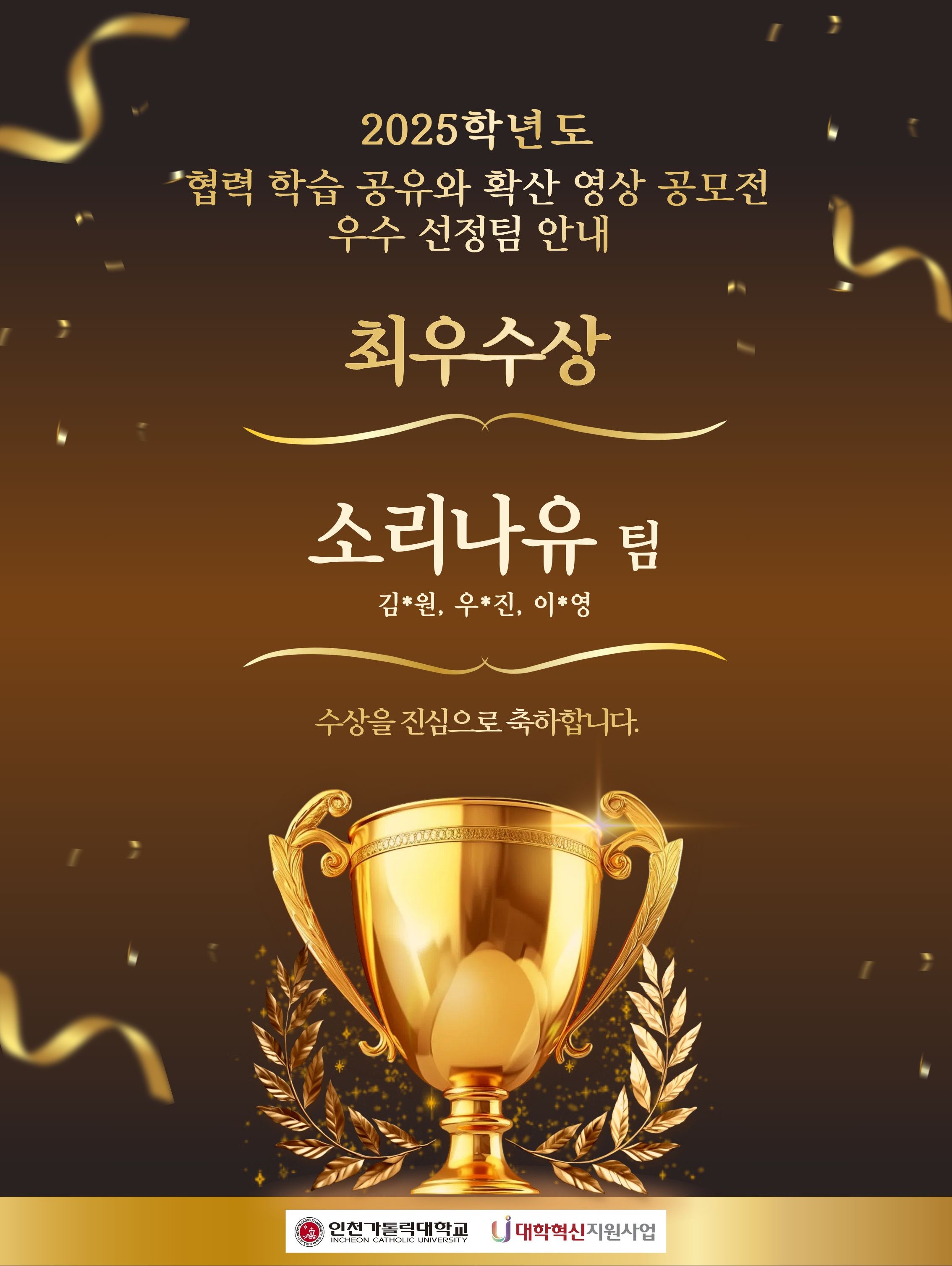 [교수학습센터] 2025학년도 협력학습 경험 확산과 공유 영상 공모전 우수 선정팀 안내